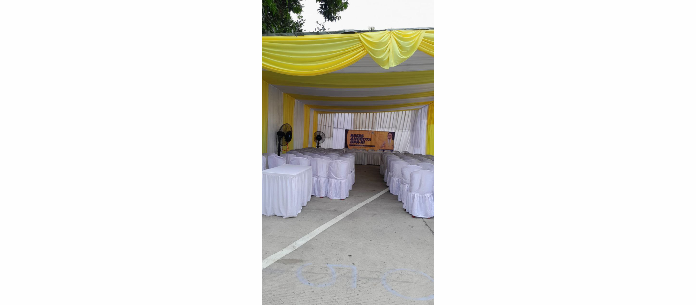 Tersedia Tenda Acara dengan berbagai jenis dan warna Tirai serta dekorasi yang sesuai dengan event Anda.